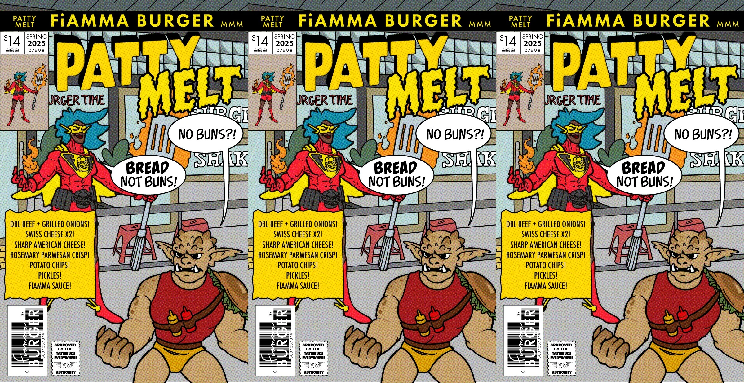Fend off hunger at every turn with our Fiamma Patty Melt, available for all of Superhero Month and snag a free comic book while you’re at it thanks to the super team over at Comics Place!